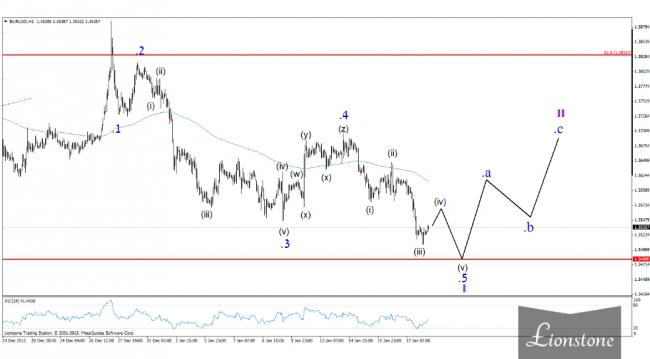 Евро-доллар. Разметка по паре несколько пересмотрена, вследствие чего считаем нисходящий импульс I незавершенным. Таким образом, на данный момент формируется завершающая волна .5 of I, которая, в свою очередь, имеет пятиволновую структуру. Можно ожидать незначительной коррекции до уровня 1.3575, после чего дальнейшее снижение к целевой отметке 1.3480.